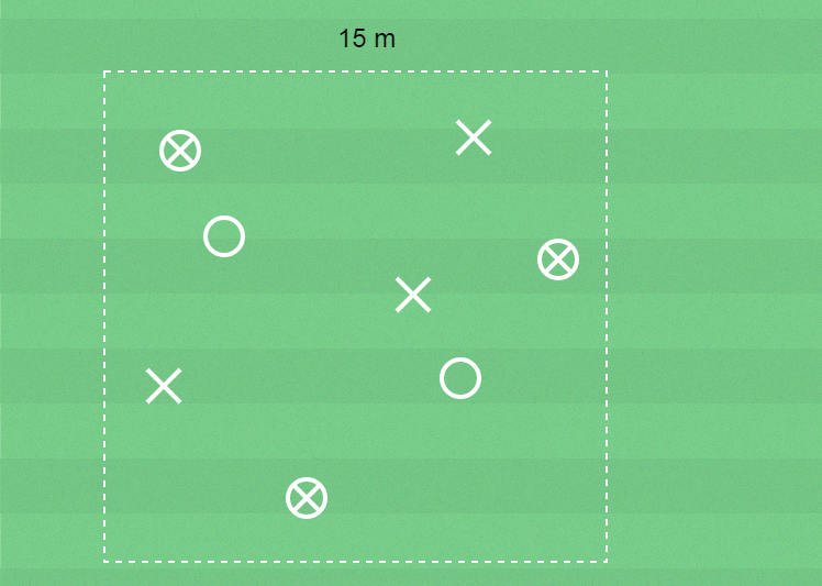 2 barn är passiva försvarsspelare och ska täcka bort anfallsspelarna utan boll.