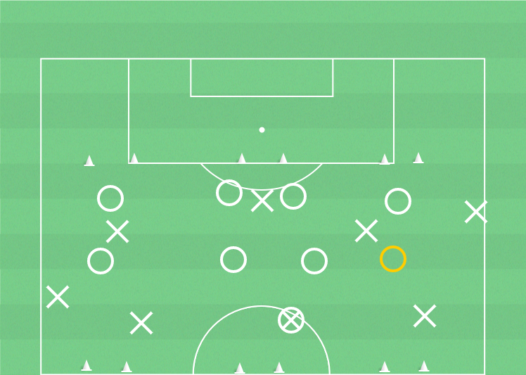 16 spelare, spelplan 36 x 60 meter med 6 konmål, bollar, koner och västar.