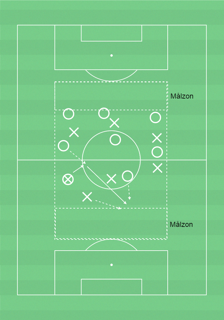 Snabbt ta sig in med bollen i spelyta 3 genom klassisk kontring.