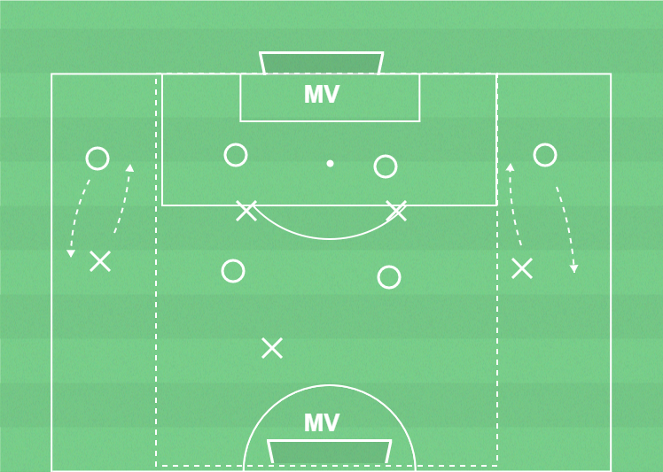Lagen får bara göra mål efter spelvändning – båda korridorspelarna har haft bollen.