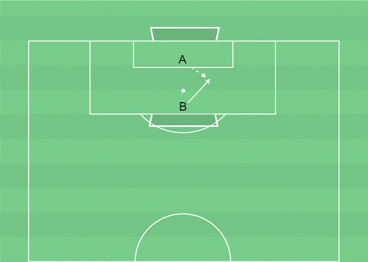B skjuter bollen vid sidan om A.