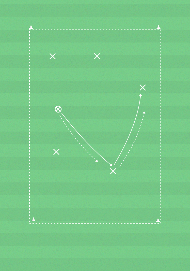 Spelaren som passat bollen försöker att ta tillbaka den innan nästa spelare hinner spela den vidare.