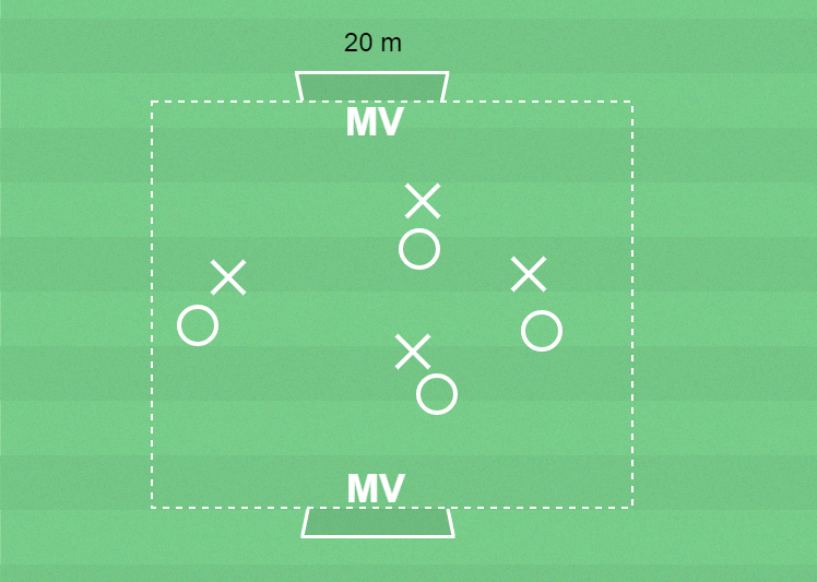 Spel 4 mot 4 med målvakter.