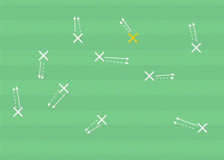 Rör dig framåt och spela handbandy med bollen.
