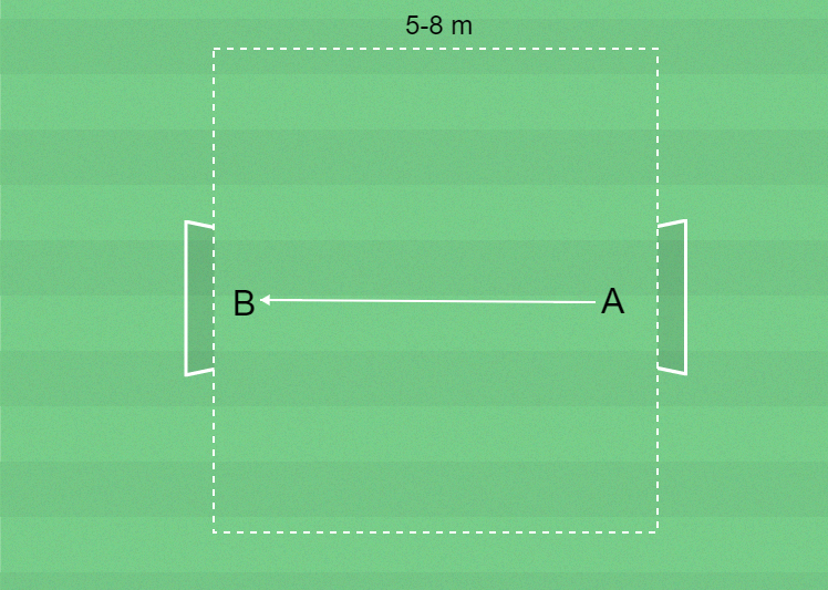 B skjuter bollen längs marken till A som fångar den,och så vidare. Försök undvika returer vid skott.