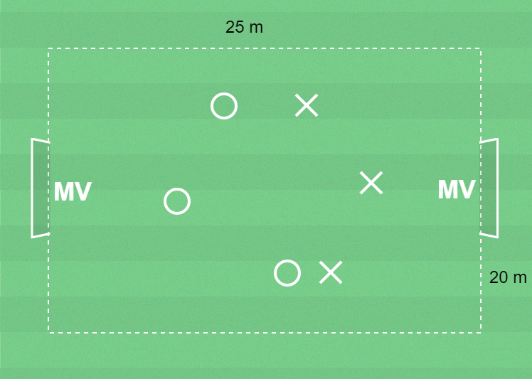 Spel 3 mot 3 med målvakter.