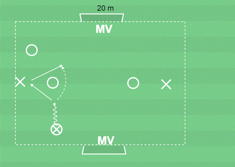 Spel 3 mot 3 med målvakter.