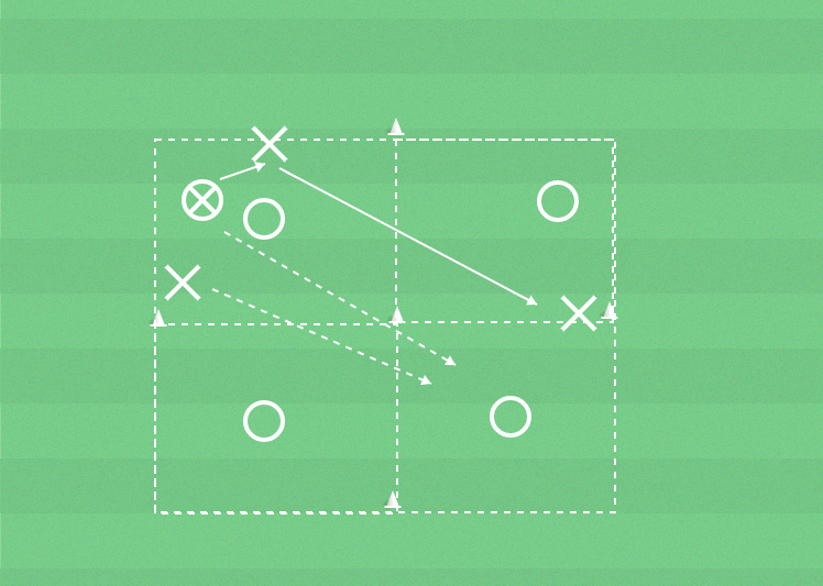 Om försvarsspelaren bryter försöker han eller hon att snabbt passa till medspelare i någon av de andra kvadraterna.