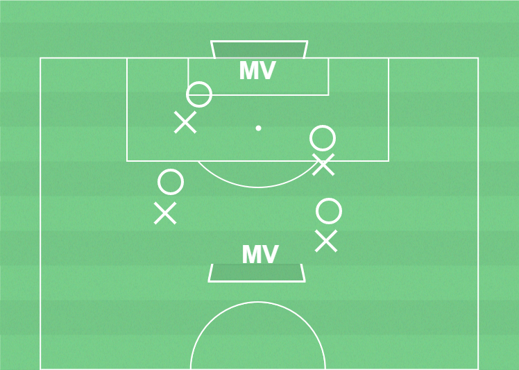 Spel 4 mot 4 med målvakter.