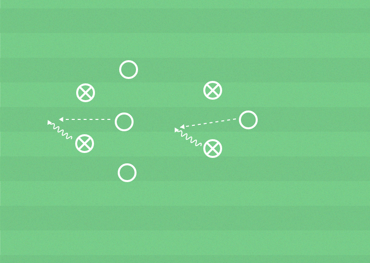 Denne springer dit, tar upp bollen och driver den sedan vidare.