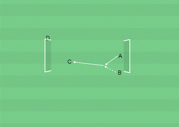 A spelar bollen mot C.