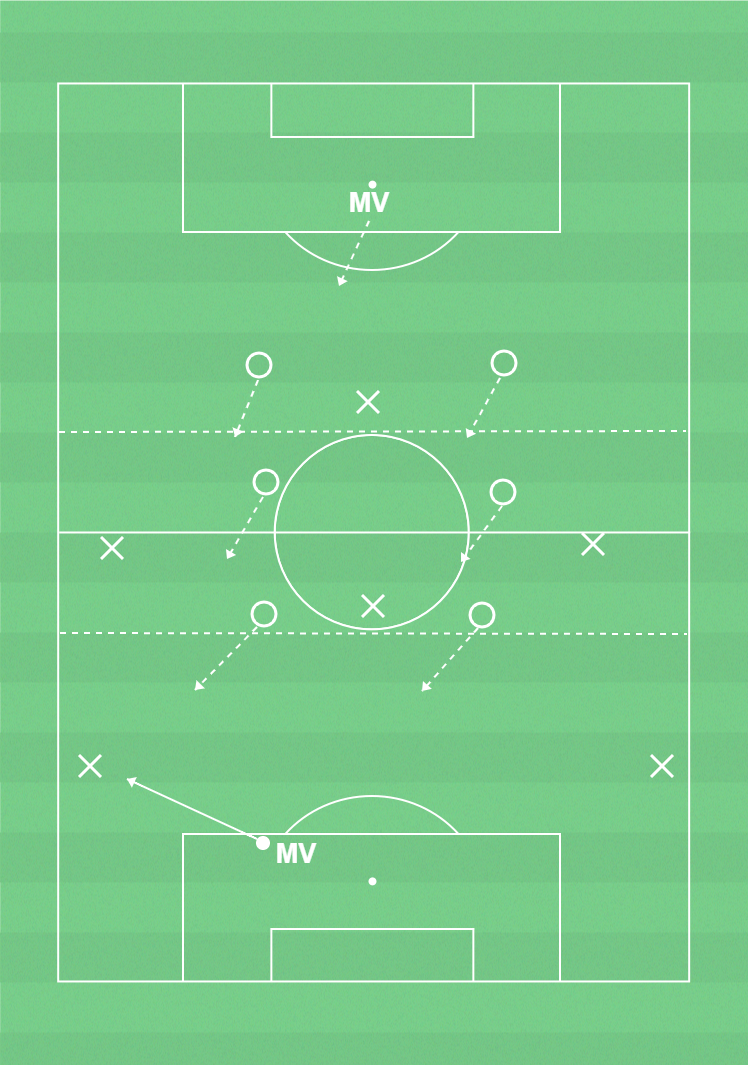 - Hur kan laget hållas kompakt? (genom att alla lagdelar (inkl. MV flyttar upp och ned beroende på var bollen är - sträva efter att ha alla spelare (ink. MV inom 2 av planens 1/3)