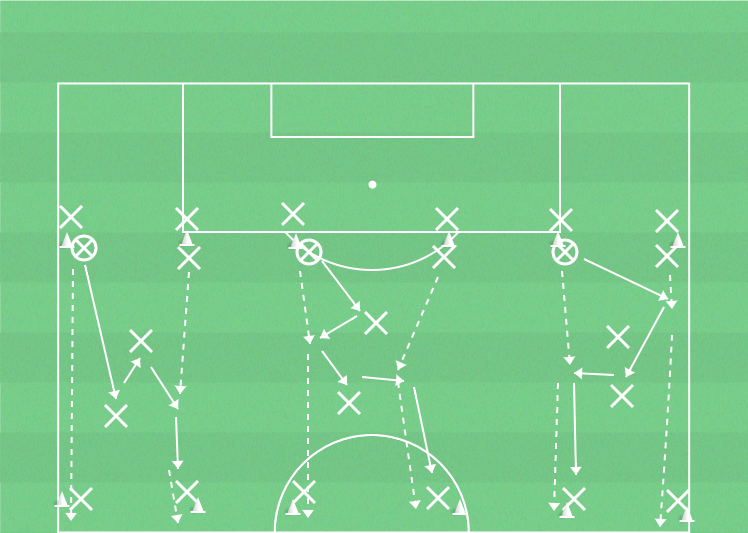 Snabb uppflyttning. Noggranna passningar. Aktivering, dynamisk rörlighet etc vid byten i mitten.