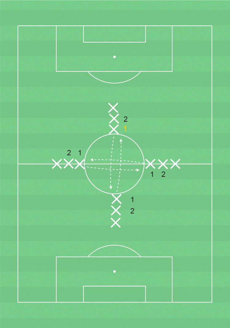 16 spelare placeras på fyra led - klockan 12, klockan 3, klockan 6 och klockan 9.