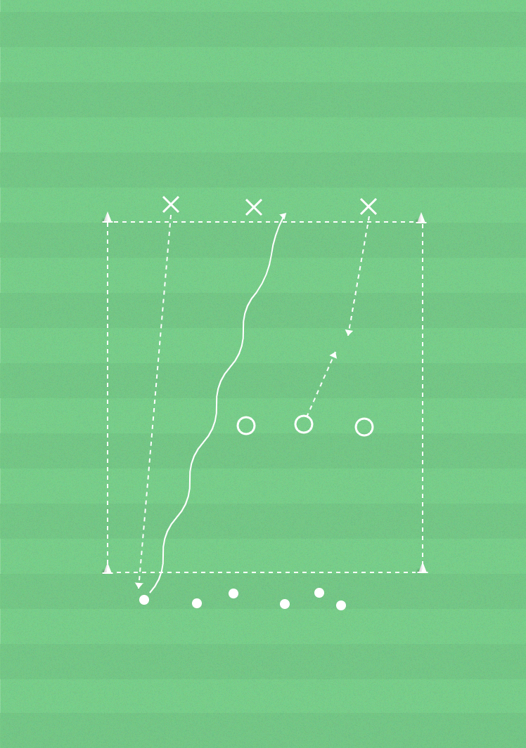 Anfallarna ska fortfarande ta sig över mittzonen utan att bli av med sin svans. På vägen tillbaka ska de driva. Det försvarande laget ska då ta bollen och driva tillbaka bakom linjen. Det är tillåtet att ta tillbaka bollen tills någon spelare drivit över sin linje. Spelare som blir av med sin svans eller boll hoppar på ett ben tillbaka innan de försöker igen.