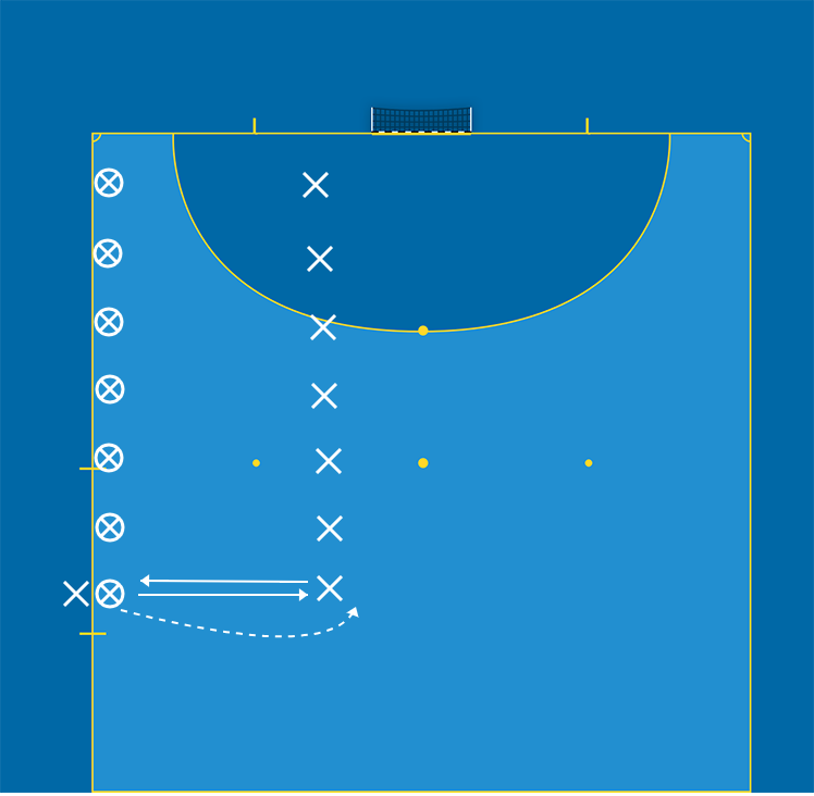 En annan progression är att öka avståndet mellan spelarna, upp till full planbred 20 m.