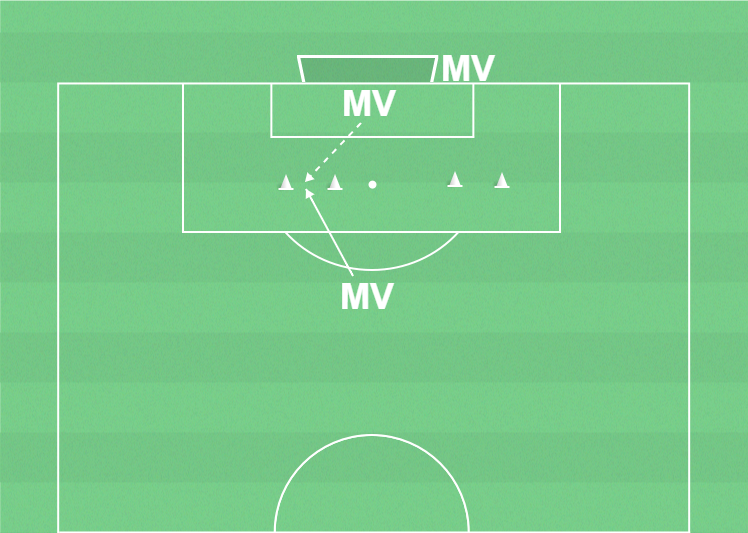 Mv1 spelar bollen mellan något av konparen. Mv2