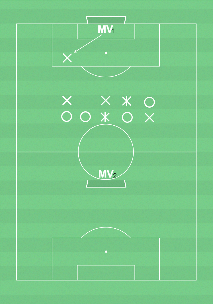 Om lag O bryter spelar de bollen till sin målvakt och övningen vänder mot andra målet.