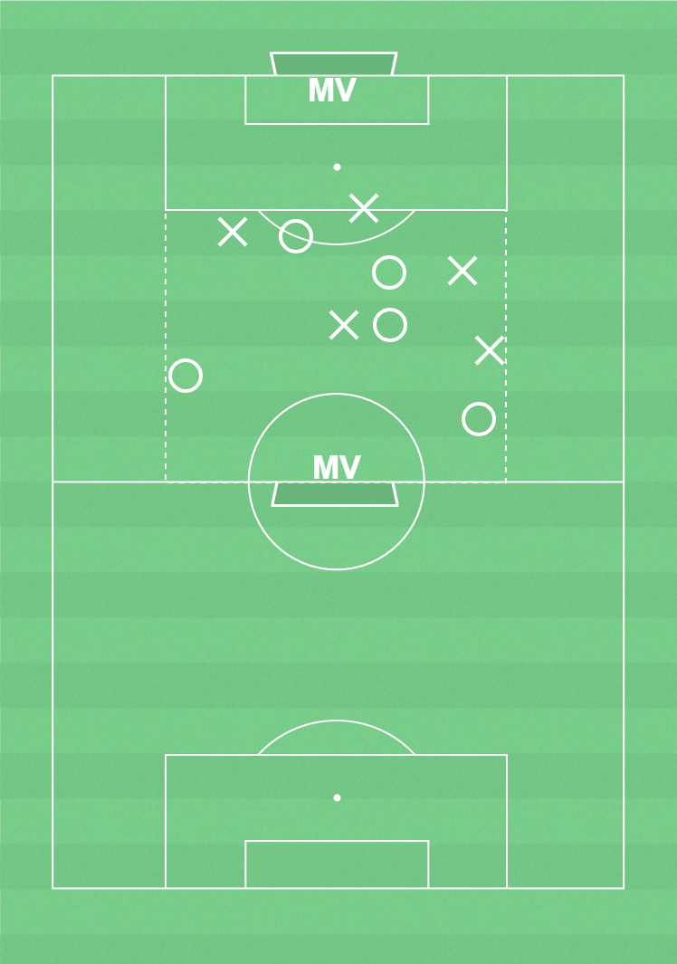På planen finns inläggszoner dit utespelarna kan löpa för att ostörda slå inlägg.