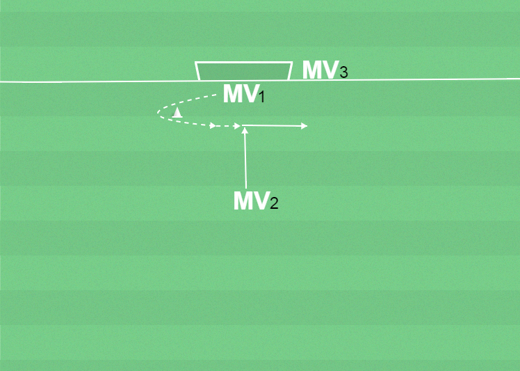 Mv1 gör en kort sidledsförflyttning åt höger och runt konen.
