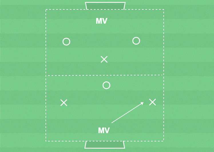 Spelarna ska sträva efter att komma till många avslut. Uppmuntra dem att avsluta först när de är på motståndarnas planhalva.