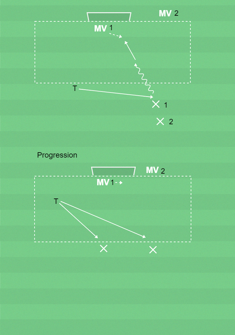 Du som tränare passar till X1 som tar emot bollen och avslutar.