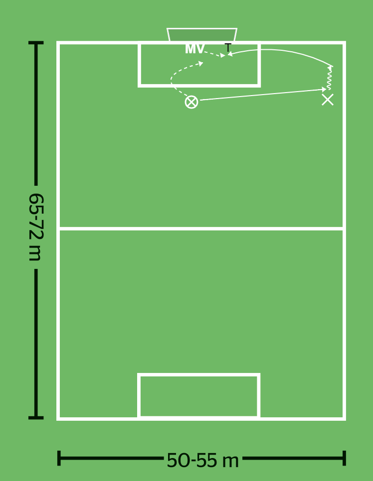 Spelaren som avslutar och målvakten byter uppgift efter två inlägg.